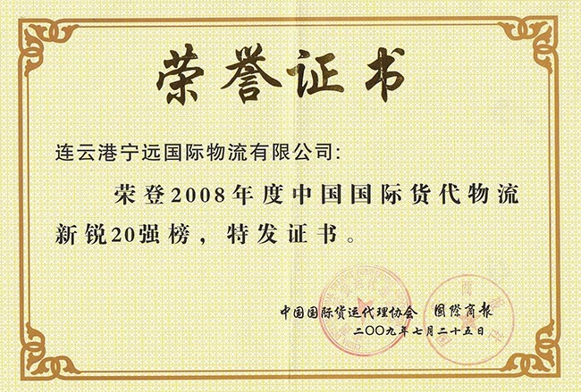 中國(guó)國(guó)際貨代物流新銳20強(qiáng)