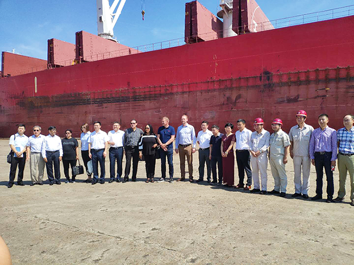 2018年7月18日上午,靠泊在連云港港口東方港務公司56號泊位的載重6萬噸的“宙斯”號雜貨輪船邊,由中材寧銳和連云港港口集團主辦、寧遠國際物流和東方港務公司承辦、德運船務和金梭船務協(xié)辦的中國連云港港口至尼日利亞拉各斯港口的物流專線開通儀式在這里舉行。來自連云港港口集團及下屬東方港務公司(原港口集團下屬的東聯(lián)港務、東源港務、東泰港務合并而成)、中材寧銳、寧遠國際物流、中材國際南京、蘇州中材、邯鄲中材、杭蕭鋼構(gòu)、尼日利亞拉各斯的ENL港口和 JPS港口、尼日利亞董氏集團、DANGOTE集團(非洲首富,也是全球黑人首富)、德運船務、金梭船務、青島思銳、連云港中聯(lián)理貨等多家單位的近80人,見證了這一重要時刻。