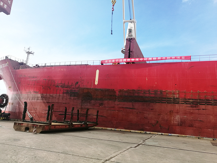 “宙斯”輪在連云港港裝載完膠合板、工程設備、鋼材等件雜貨后,將駛往尼日利亞的拉各斯港,連云港港與拉各斯港之間首次實現(xiàn)“點對點”直航。