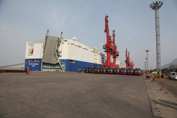 此次是連云港港口歷史以來最大的一批客車出運。361臺車輛在28日14點開始裝船,于28日21點裝船結(jié)束,歷時7個小時。我公司寧遠(yuǎn)物流在此批客車出口中進(jìn)行了專業(yè)服務(wù),在港口進(jìn)行24小時值班接車,認(rèn)真核對車輛與單證信息是否一致,仔細(xì)檢查車輛外觀是否完好,并安排專業(yè)單證進(jìn)行通關(guān),為車輛安全出口到國外做足了充分的保障工作。